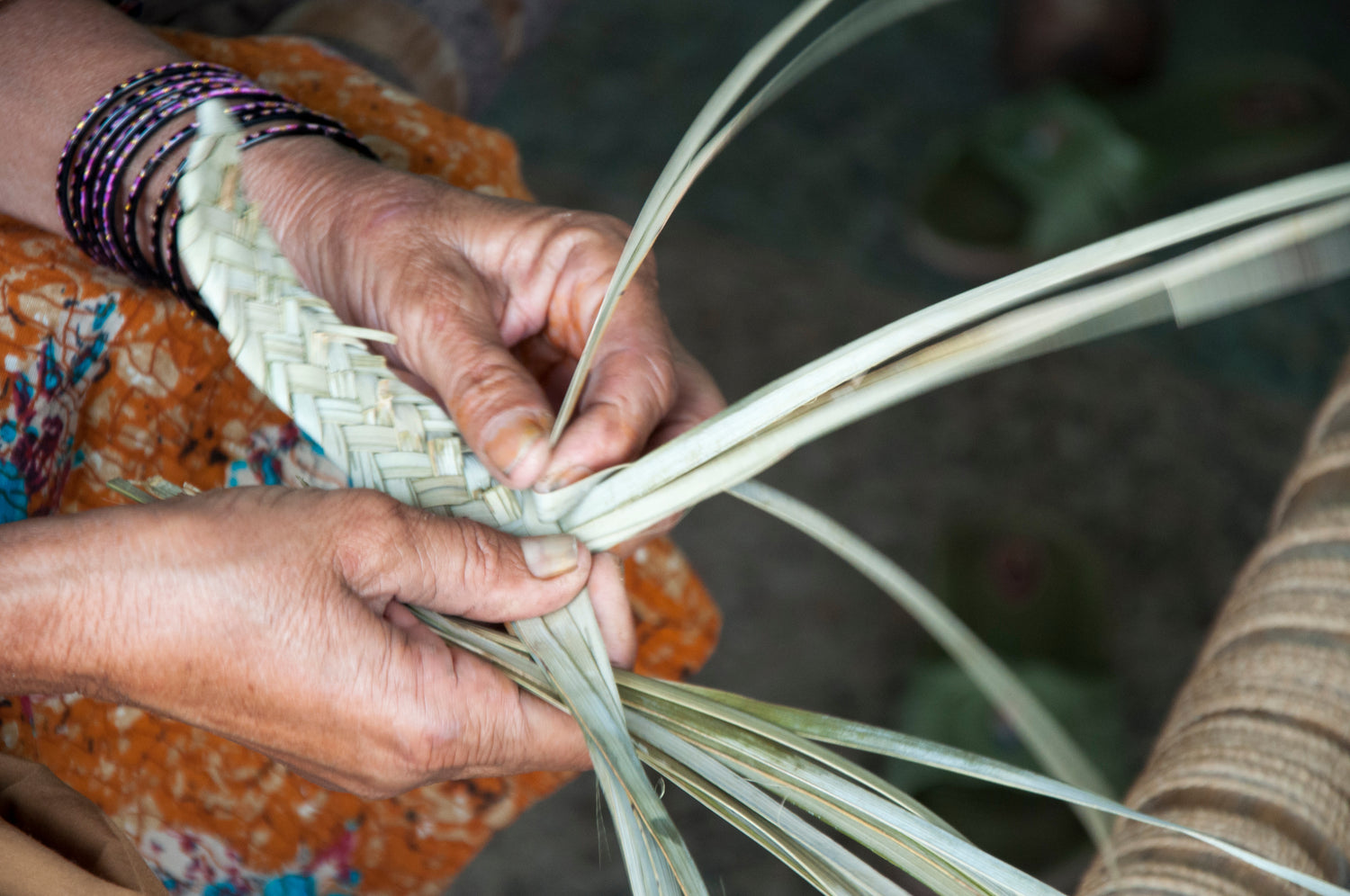 Our palm artisans are a group of men and women between 30-50 years old from Guajira who relocated to more urban Santa Marta and Riohacha. They use ancestral knowledge and techniques to create our beautiful wallets and bags. First the palm is dried and immunized to remove bacteria and germs. There is then a group industrial engineer who creates wire molds to give firmness and consistency to the pieces before the palm is weaved.
