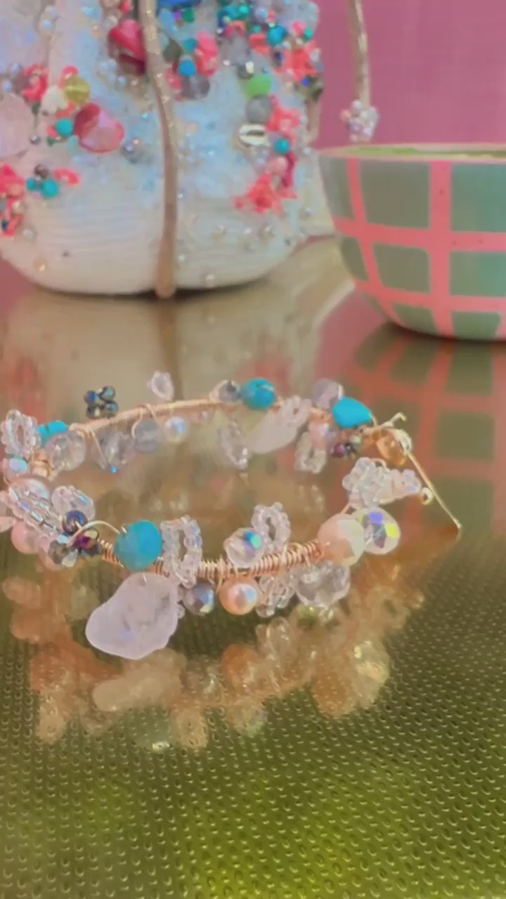 Pieces are made from the highest quality materials including: 24k gold wire, faceted beads, druzy quartz, turquoise, agate, freshwater pearls, rhinestones, gemstones, shells and other sea treasures.